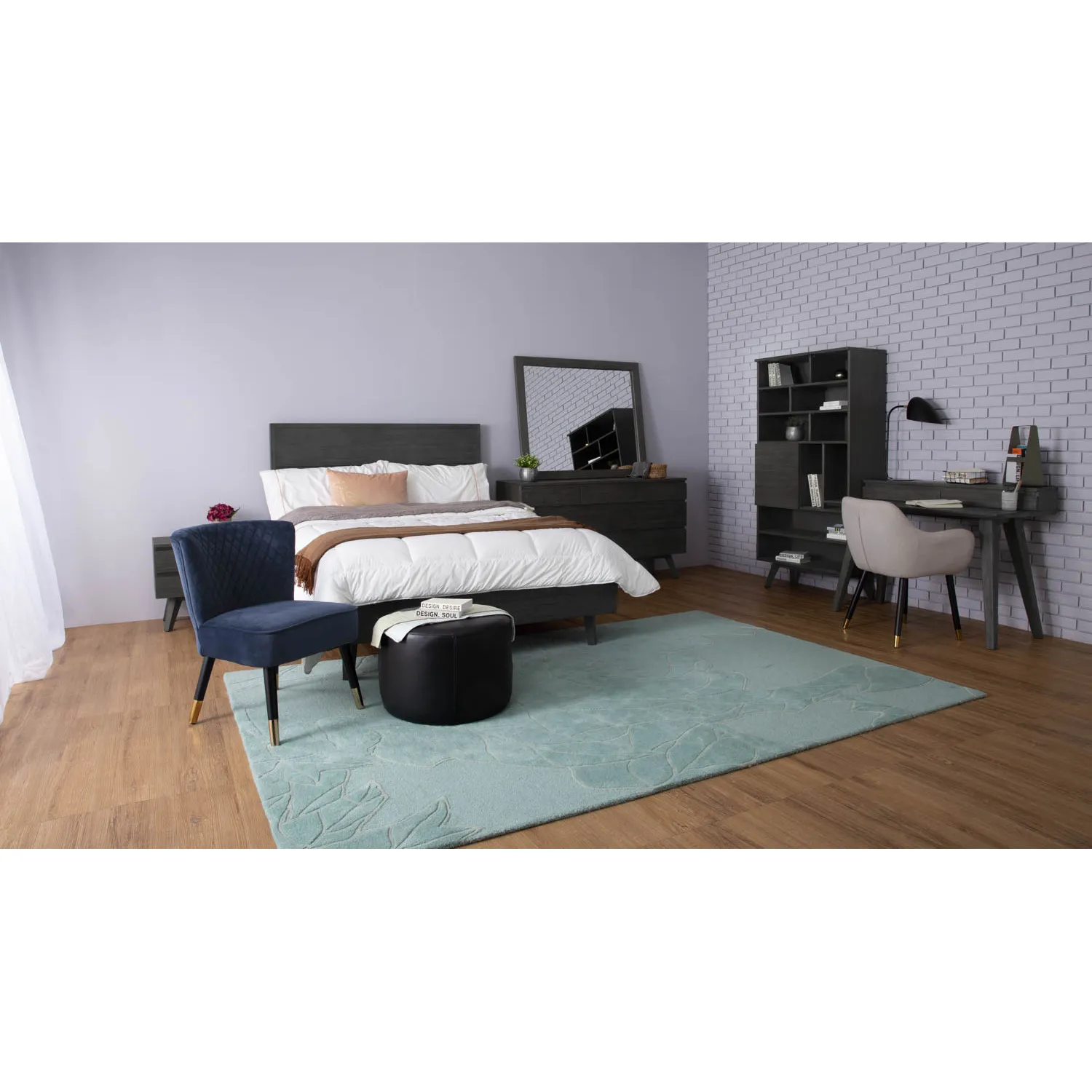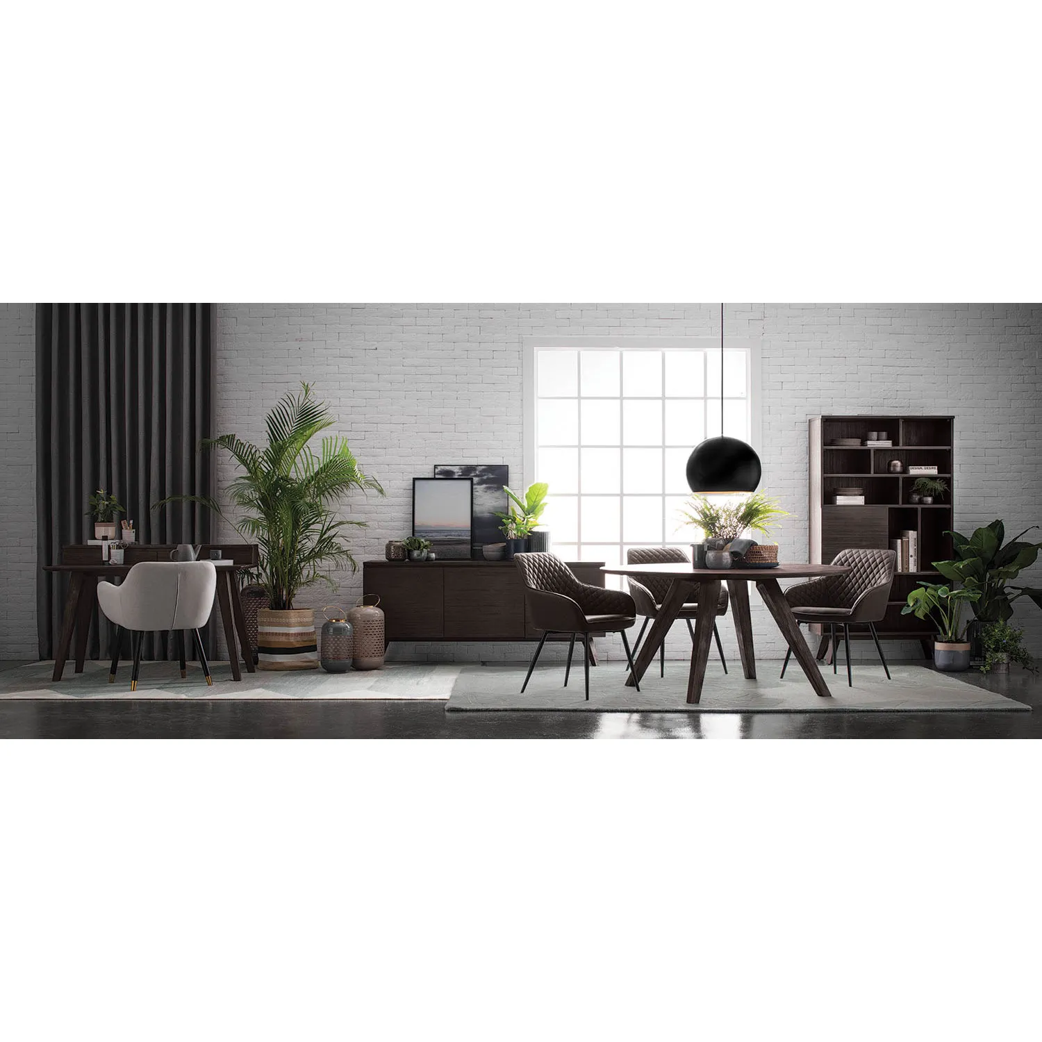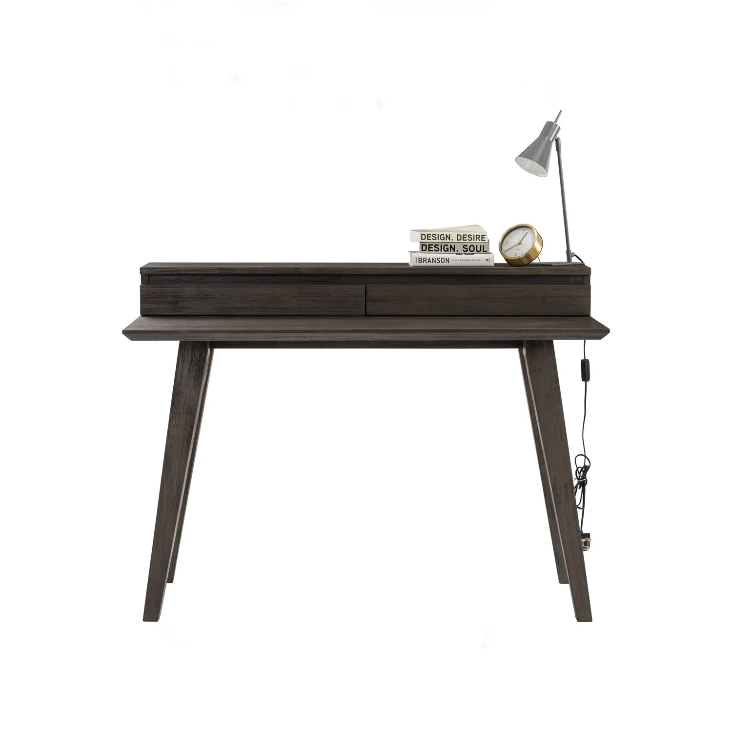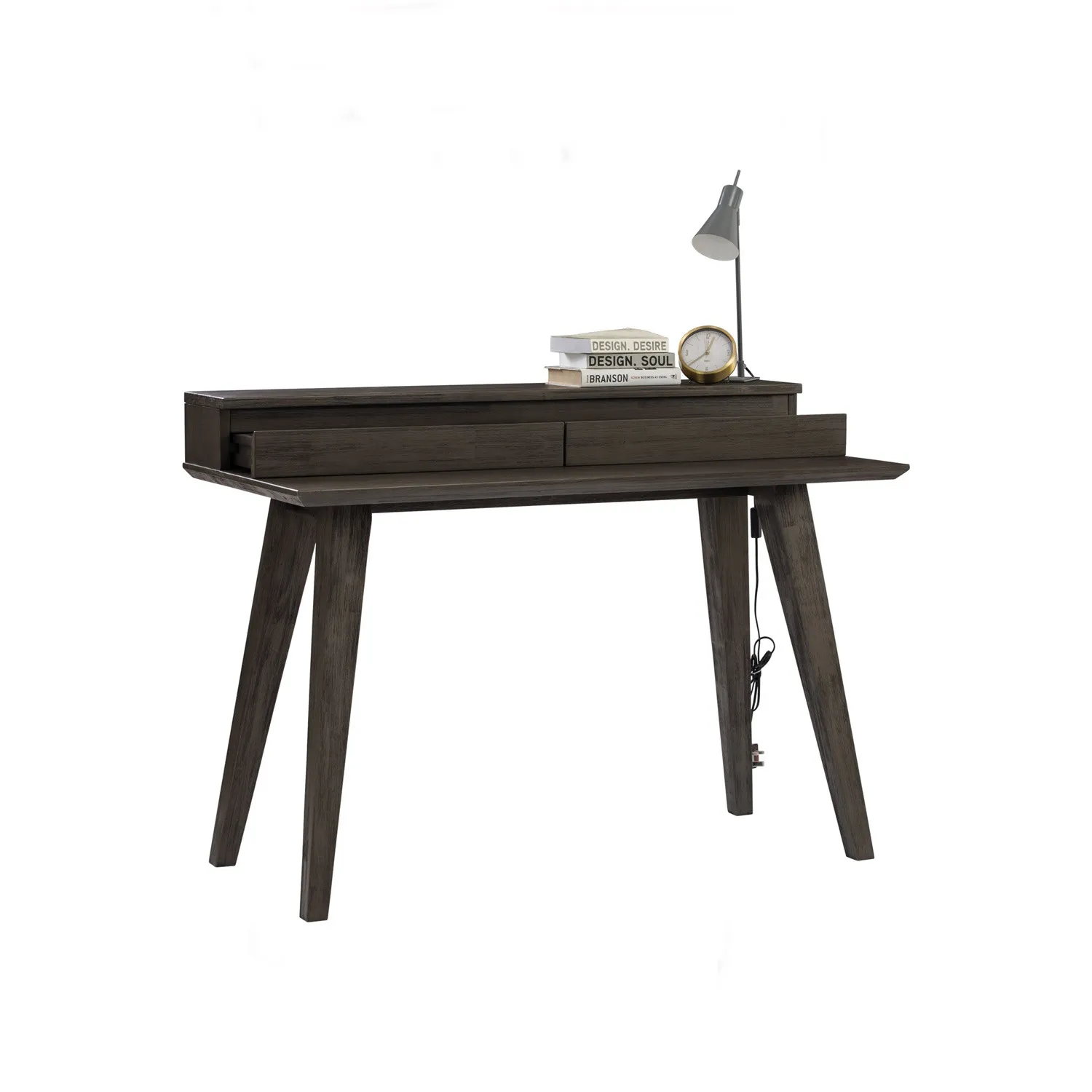 Dabney Working Desk in Anthracite Highland colour. The Dabney Working Desk blends Mid-Century Modern design with Rustic character, creating a workspace that is both practical and stylish. Crafted from solid acacia wood with an acacia veneer top, it emphasizes natural textures and durability. The sturdy construction and timeless silhouette ensure long-lasting performance, while the warm, organic finish enhances its inviting aesthetic. With its straightforward form and refined details, the Dabney Desk adapts effortlessly to both contemporary homes and rustic-inspired interiors. It provides a functional surface for work while contributing a sense of authenticity and warmth to any space.