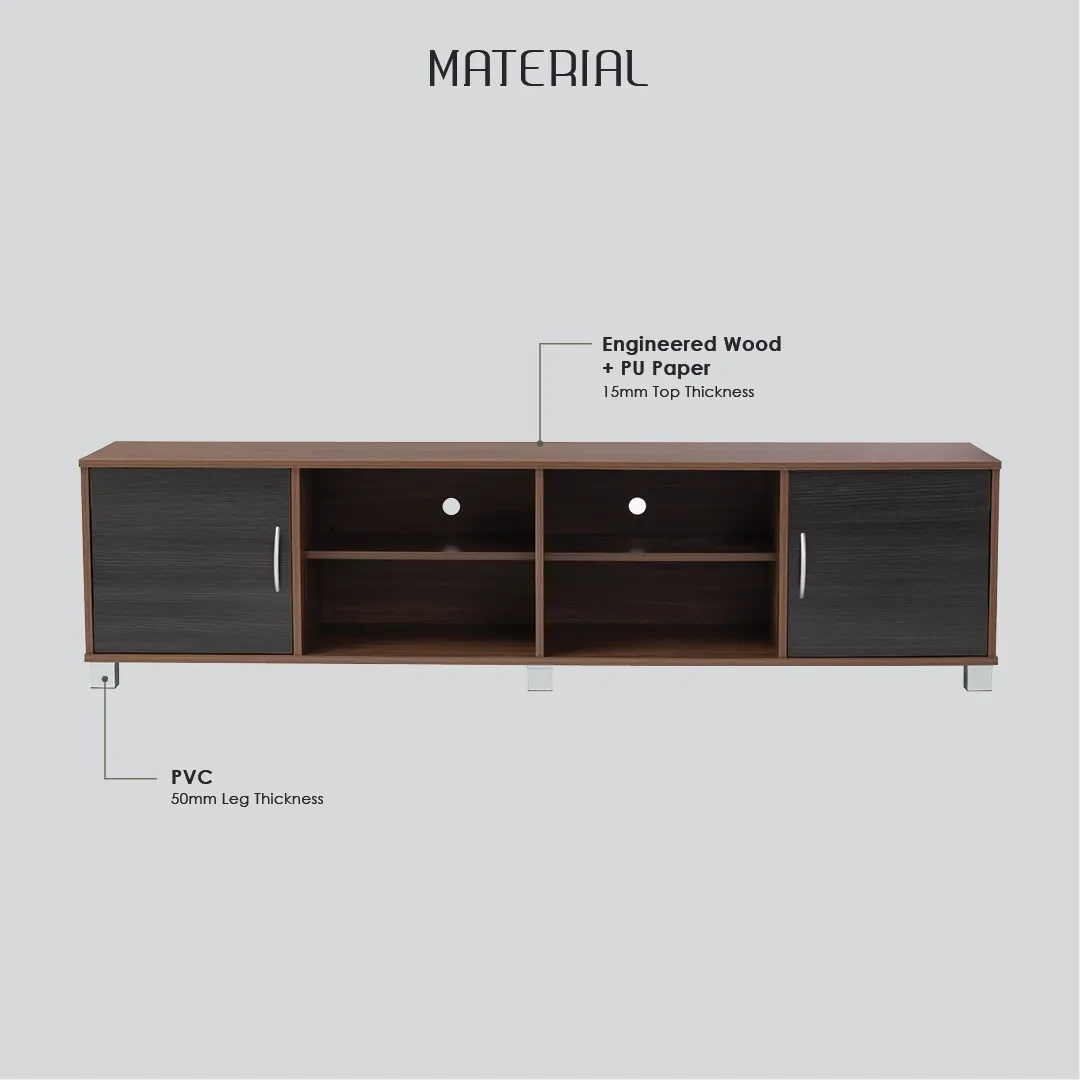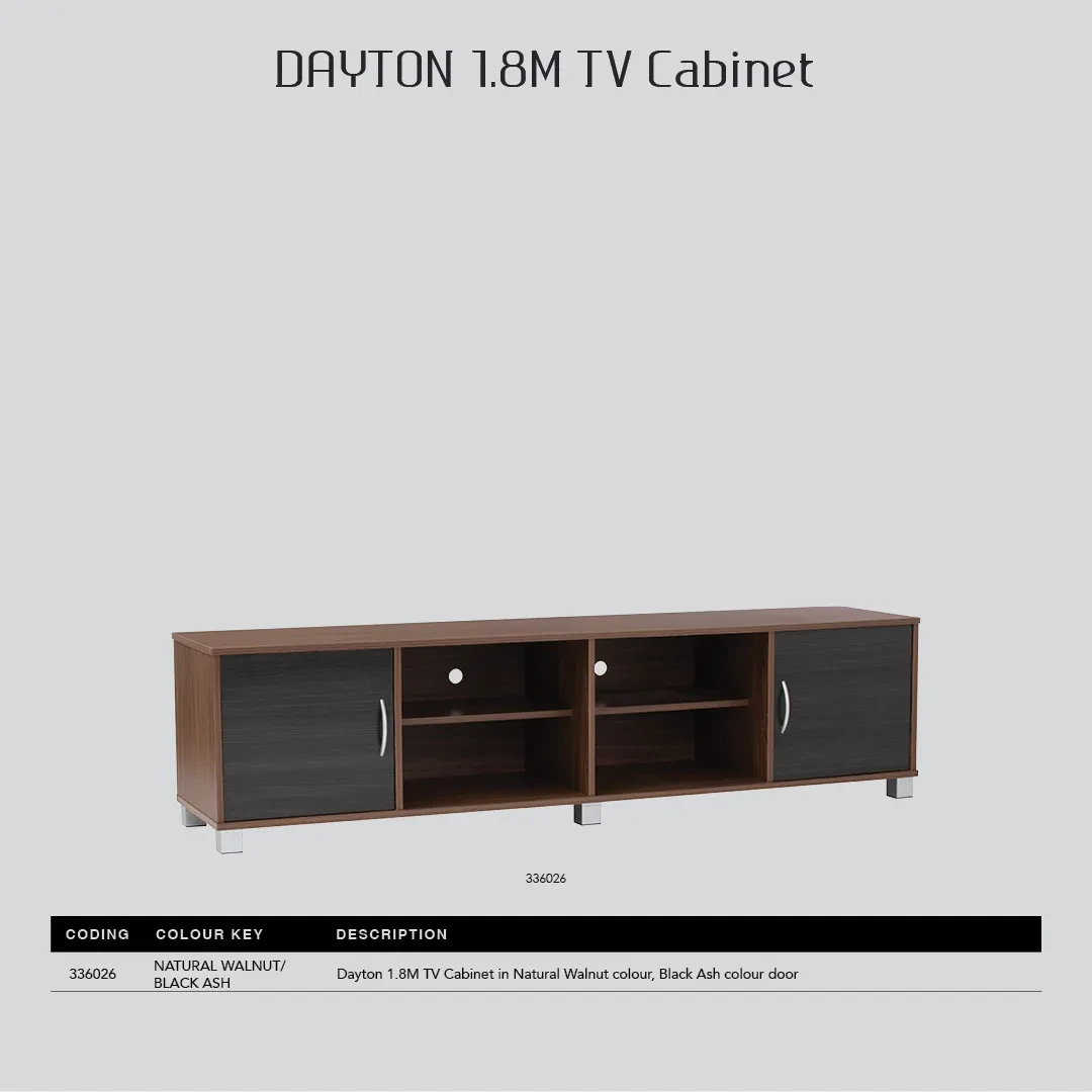 DAYTON 1.8M TV CABINET NATURAL WALNUT/BLACK ASH