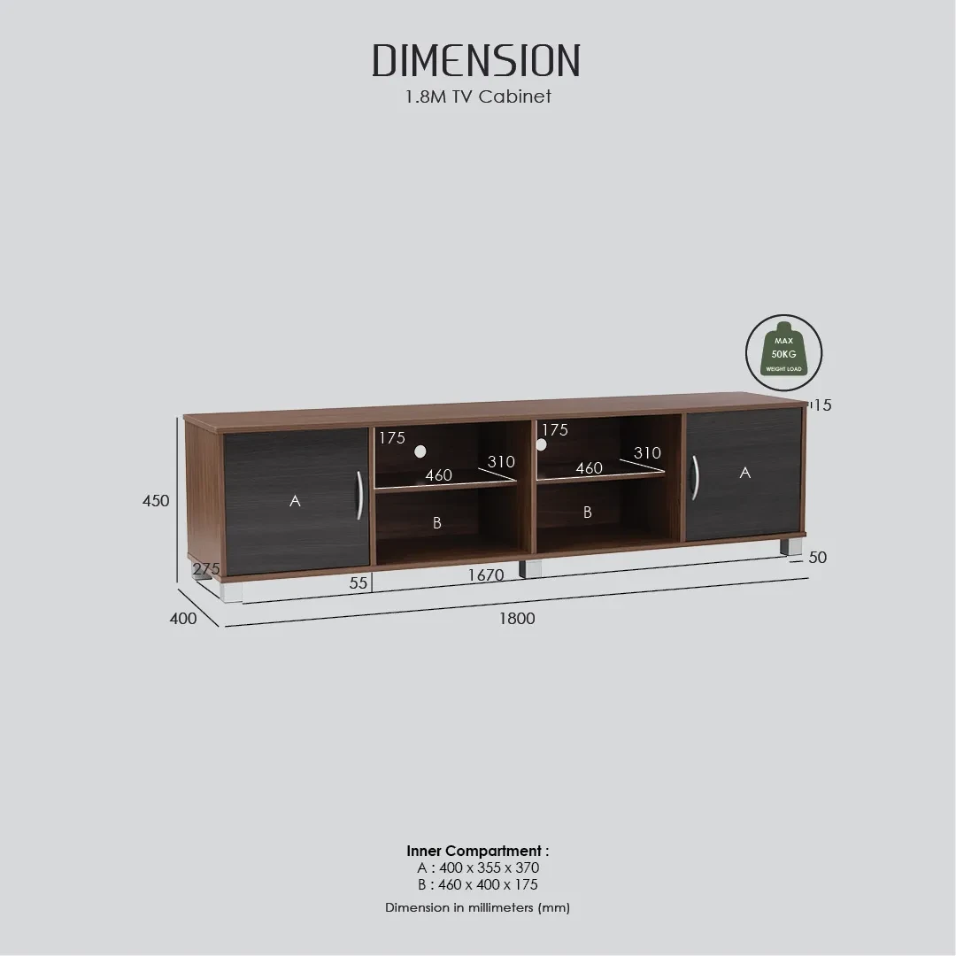 Dimension (mm): W1800 D400 H450