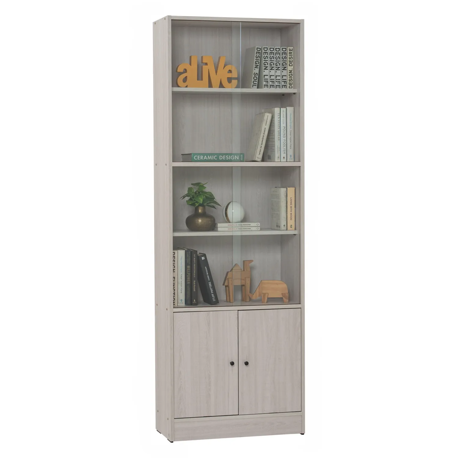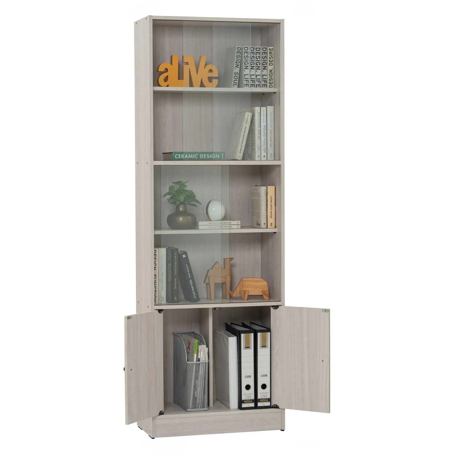 Eco file cabinet with glass in Light Oak colour