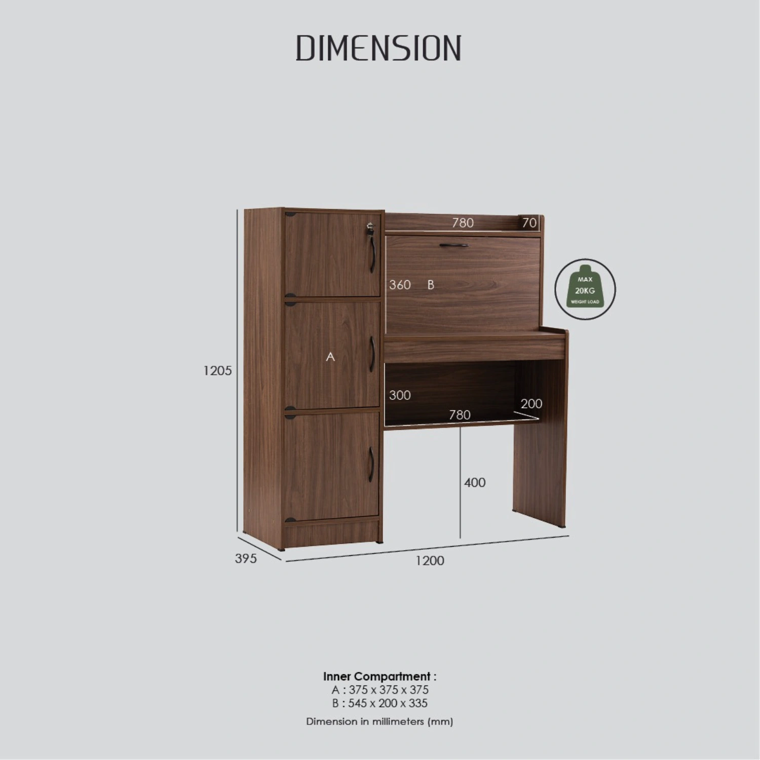 Dimension (mm): LARGE: L1200 W395 H1205