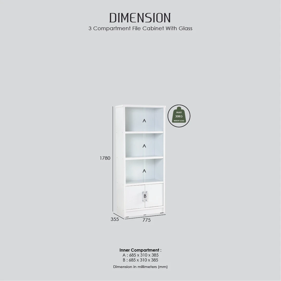 HAVIR FILE CABINET WITH GLASS DOOR WHITE