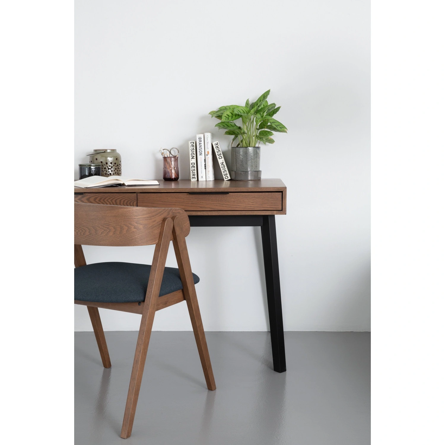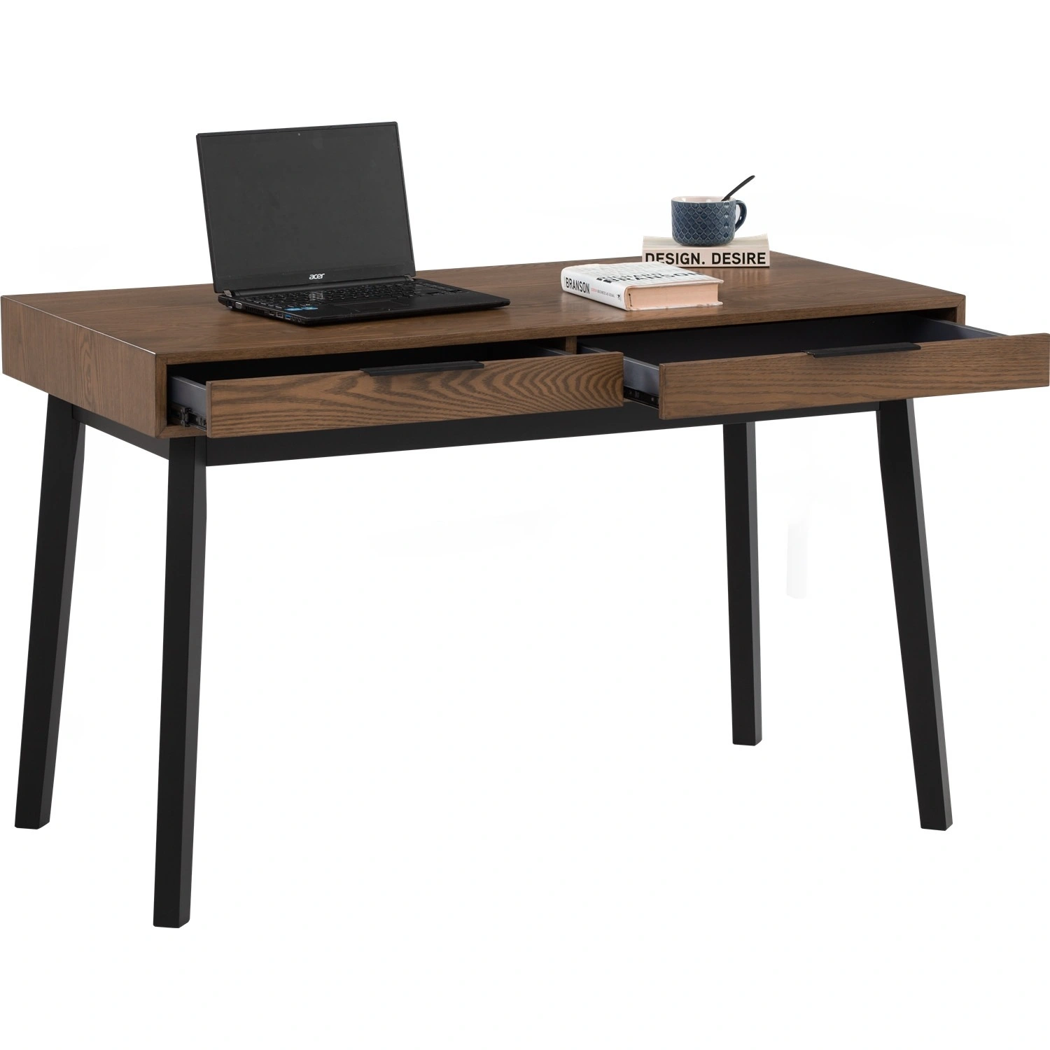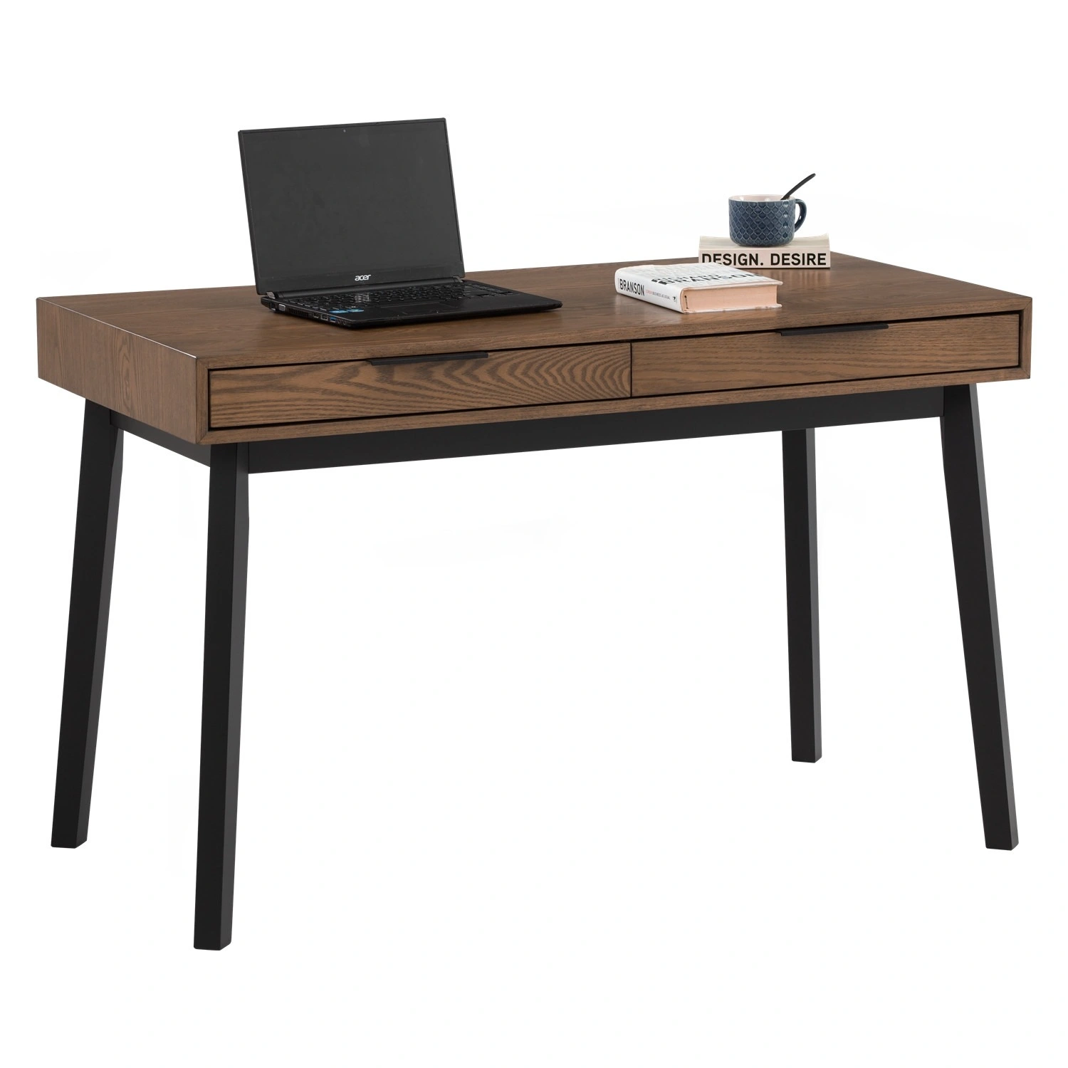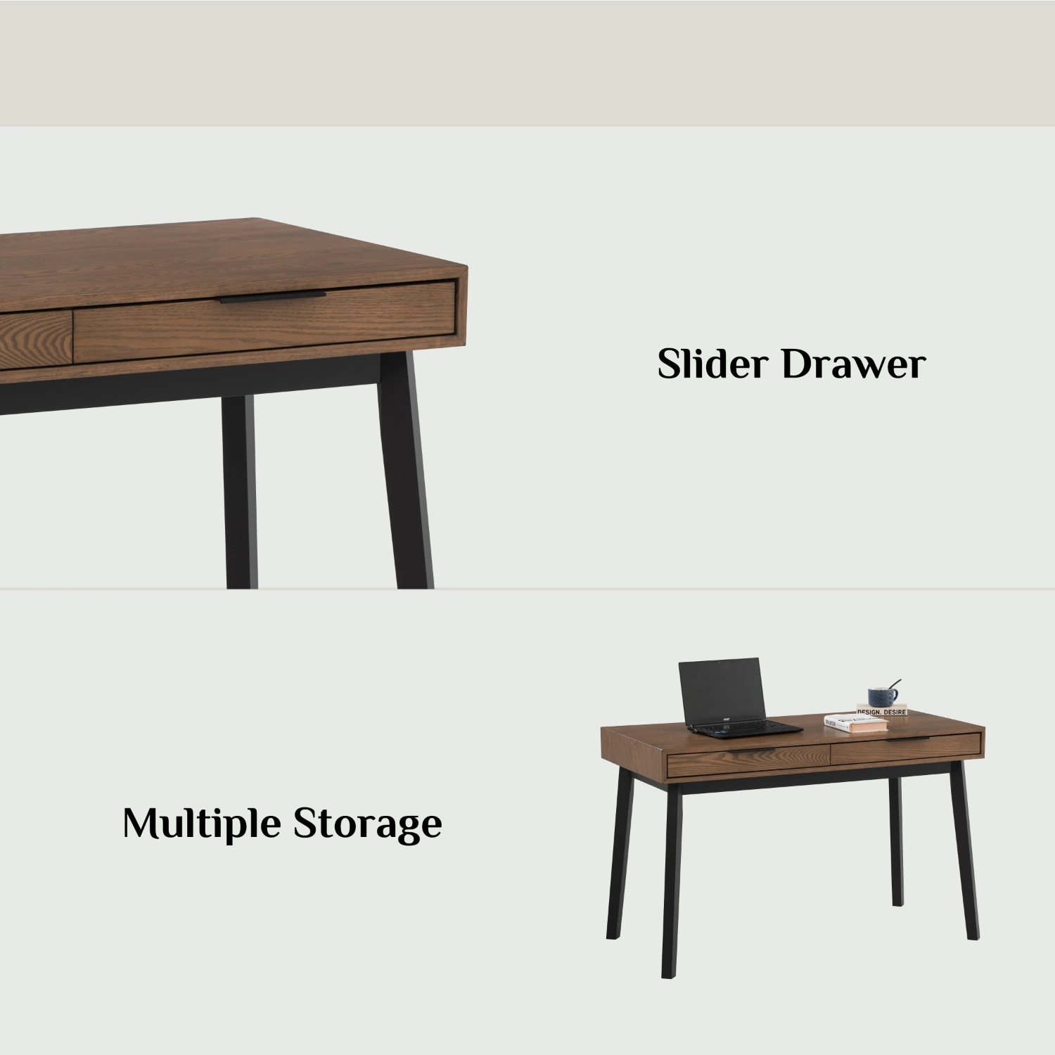 Malton working desk in Black colour leg, Cocoa colour top. The Malton Working Desk reflects Mid-Century Modern style enriched with Rustic undertones, offering a versatile and durable piece for contemporary interiors. Supported by Malaysian oak legs and topped with ash veneer, it brings together natural beauty and solid craftsmanship. Its clean lines and understated form allow it to adapt easily to a variety of spaces, from home offices to creative studios. The Malton Desk is as practical as it is stylish, providing a reliable surface for daily work while adding a sense of warmth and sophistication to its environment.