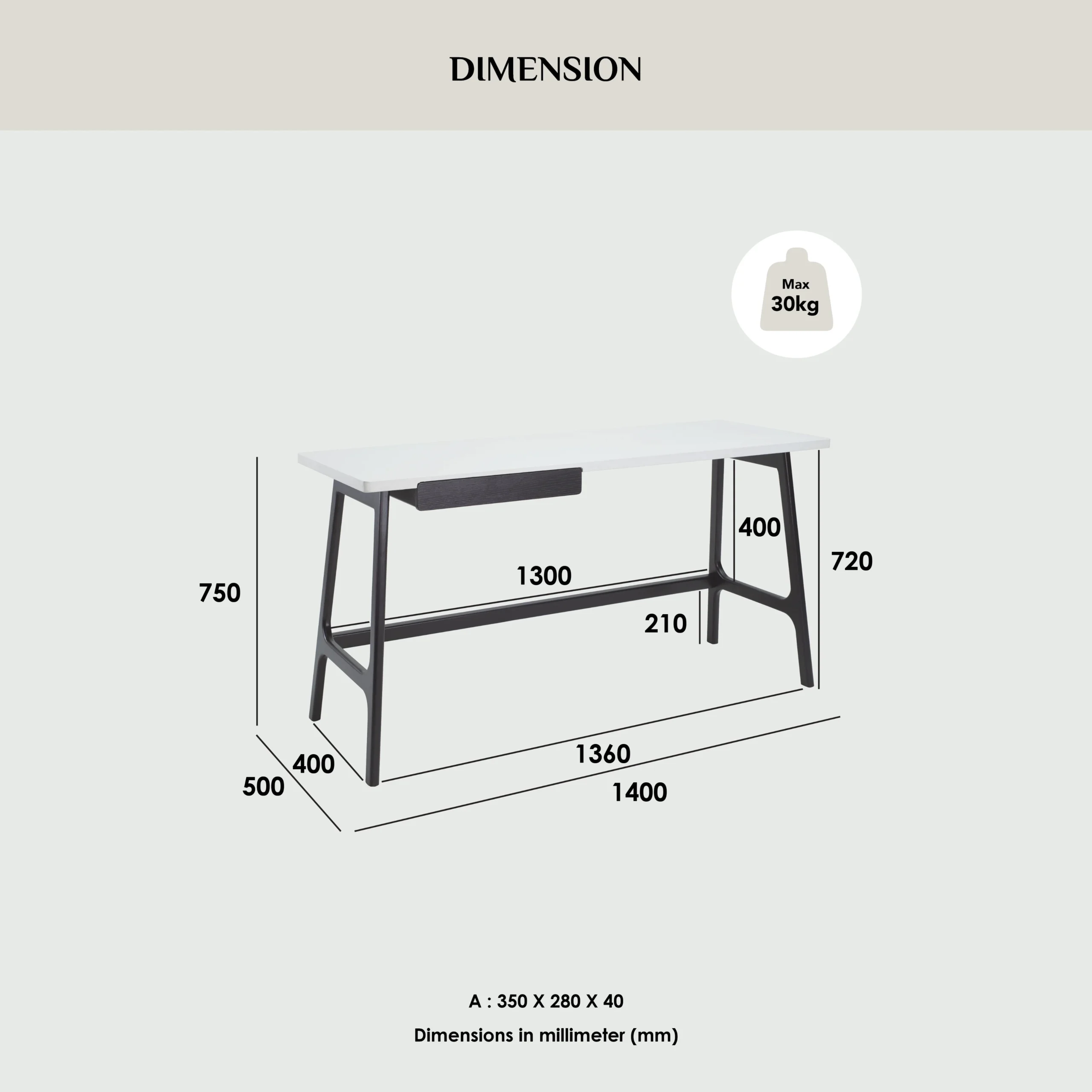 Dimension (mm): L1400 W500 H750 T25