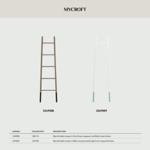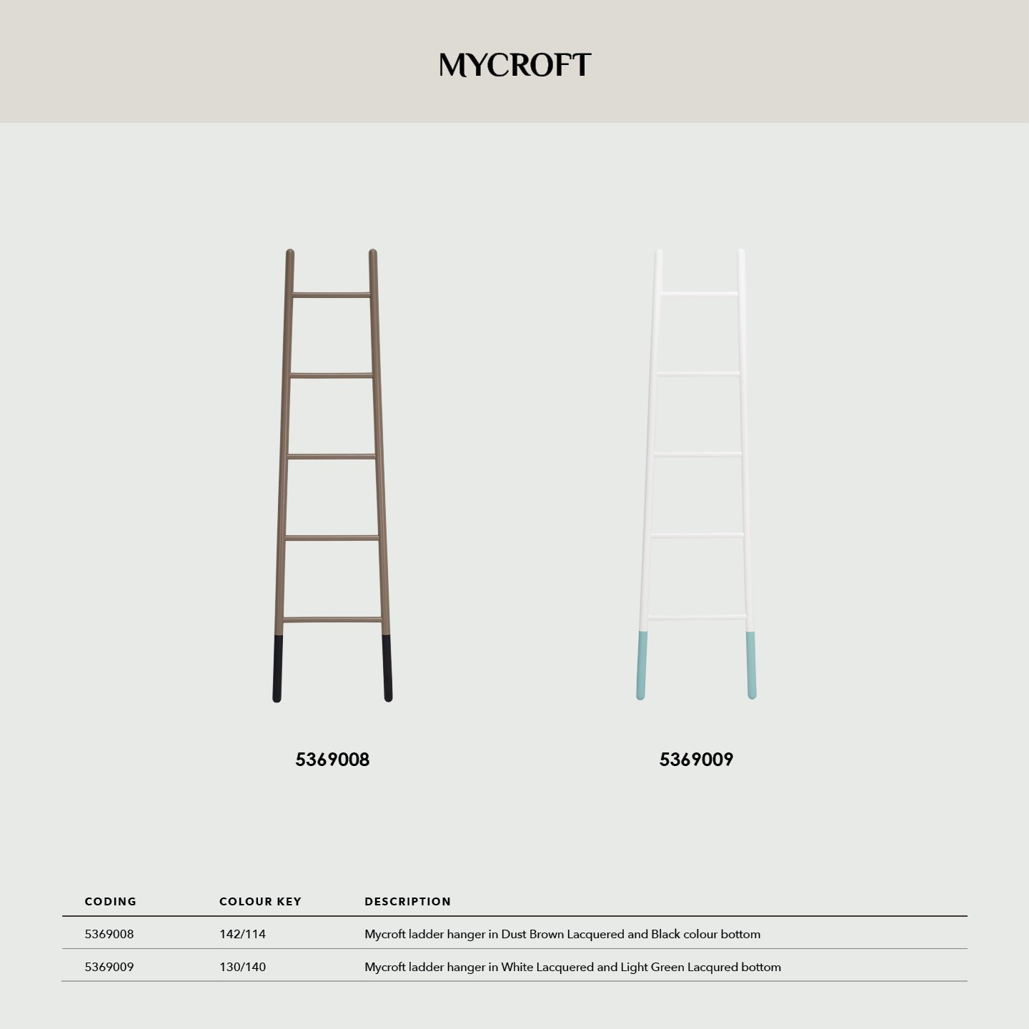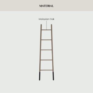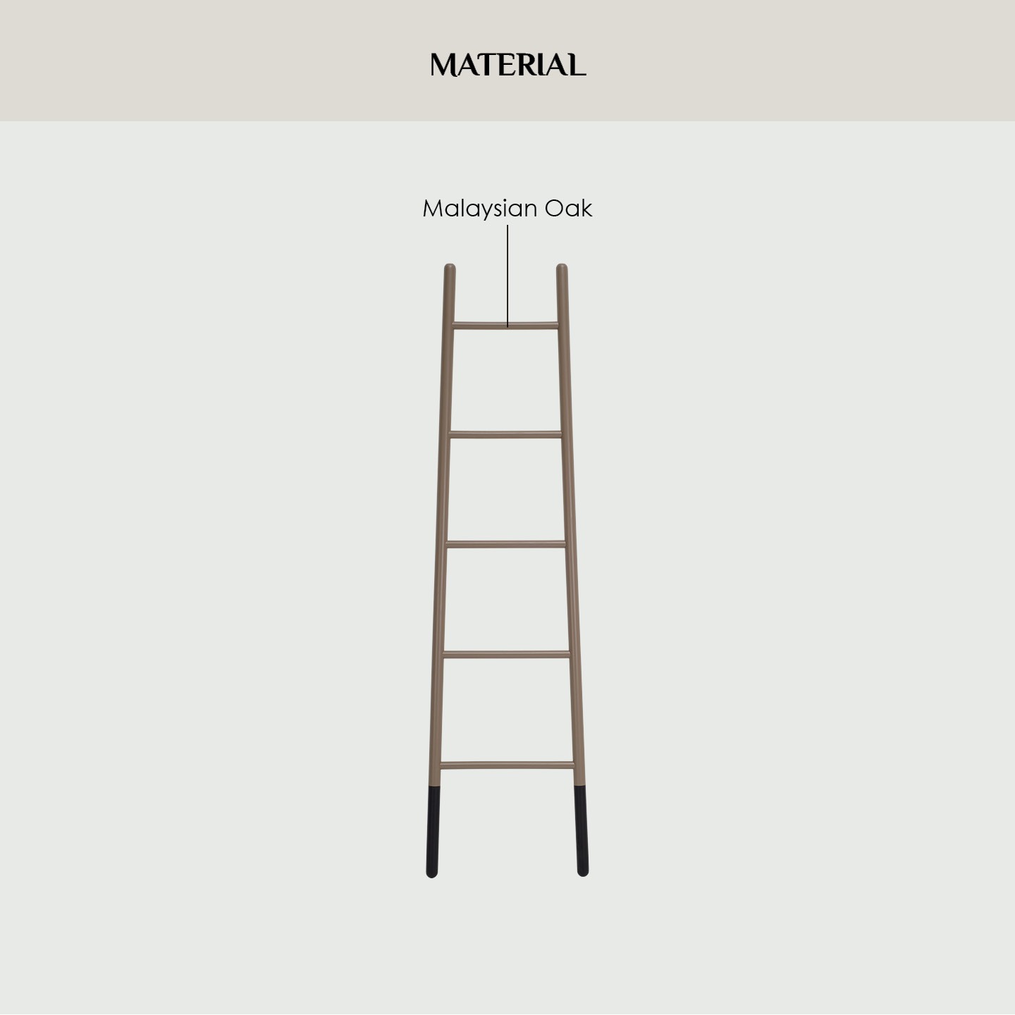 Mycroft ladder hanger in White Lacquered and Light Green Lacquered bottom. The Mycroft Ladder Hanger embraces a playful Scandinavian-inspired style, combining Malaysian oak construction with a crisp white lacquered frame and light green lacquered feet. Its ladder-like design provides a smart vertical storage solution for clothes, towels, or accessories while adding a touch of color to interiors. Ideal for bedrooms, bathrooms, or entryways, this piece balances practicality with a light, airy aesthetic. The natural wood base paired with refreshing hues makes it a functional yet stylish addition to contemporary homes.