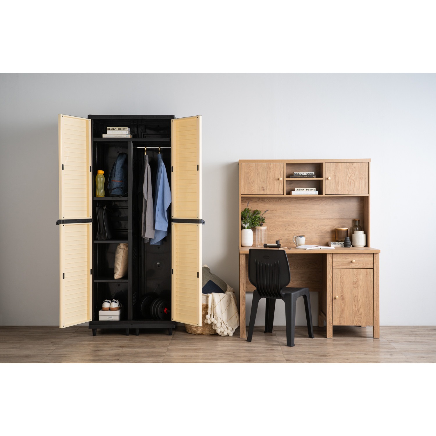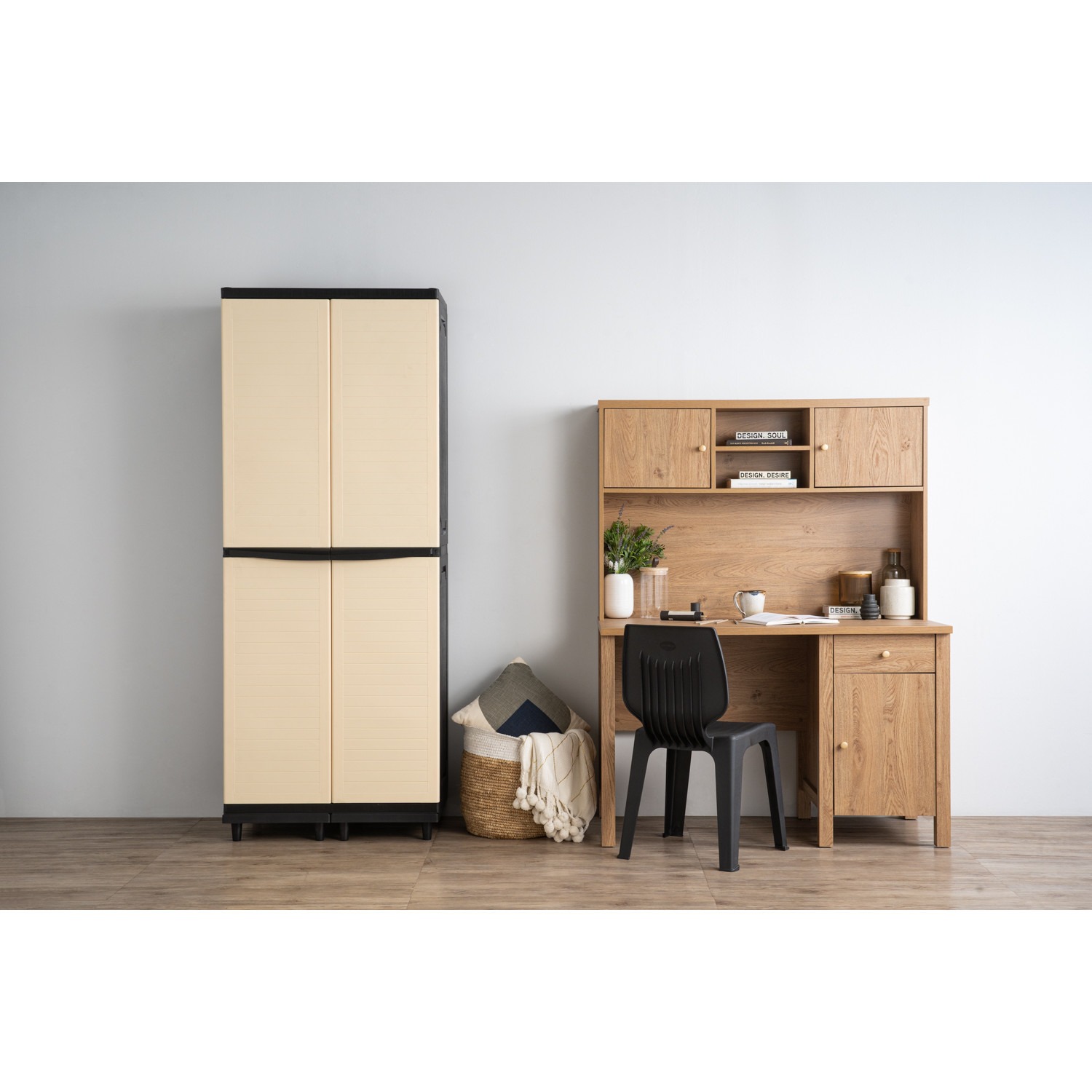 Optimus multi purpose cabinet with Black colour body, Beige colour door