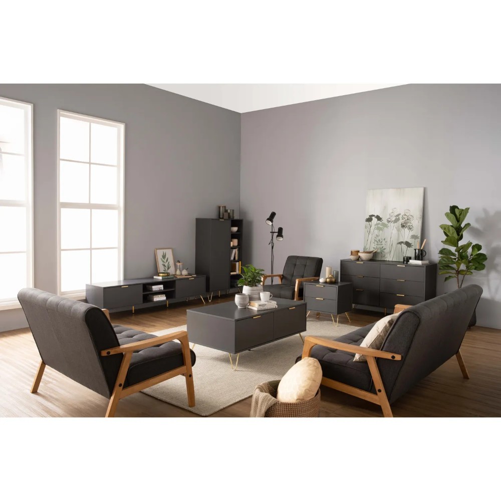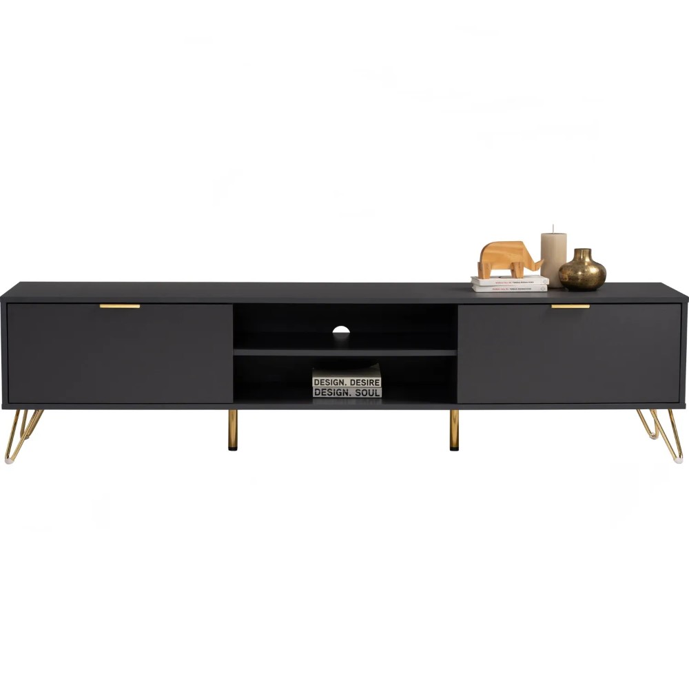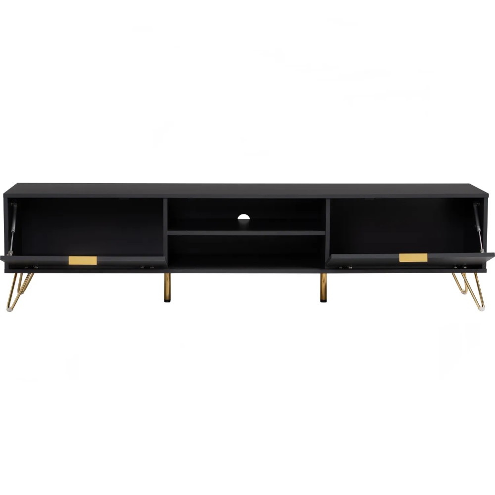 Volos 1.8m tv cabinet in Gold colour metal leg, Black colour top